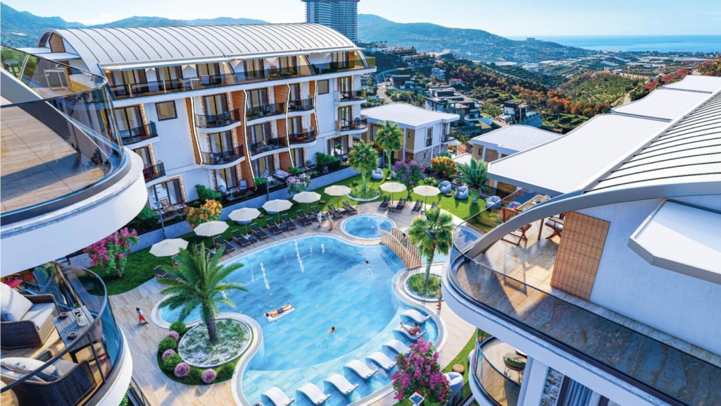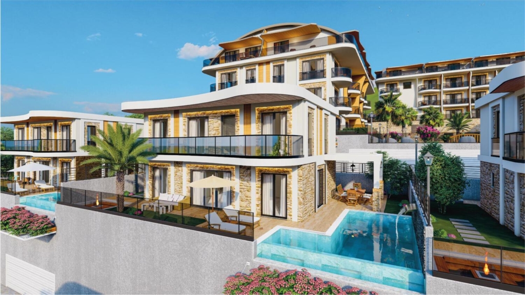Villa Style Duplexes for Sale in Kargicak Alanya Nestled atop a picturesque hillside, this exquisite mansion offers a revolutionary way to experience a luxurious lifestyle in Turkey by the sea. Duplexes in Kargicak, featuring private gardens and terraces, have been designed to provide unparalleled comfort and convenience in every square meter, enveloping you in the embrace of nature. They offer breathtaking vistas of the Mediterranean’s allure, encompassing the sea, majestic mountains, and the pure essence of nature. Duplex apartments are suitable for obtaining Turkish citizenship through real estate investment.